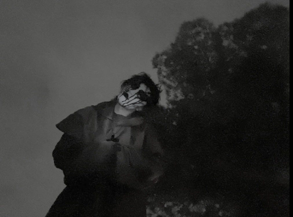 I don’t think it talks. It’s more of a presence—like smoke, or something on fire far away. Like the Japanese yōkai Rōjinbi, or Enenra. It probably just watches me pacing around, laughing and talking to myself. Maybe even finds me annoying, doing my little field recordings, listening to the wind at max volume. We wouldn’t talk—we’d just be aware of each other’s presence. Sharing the same air.'